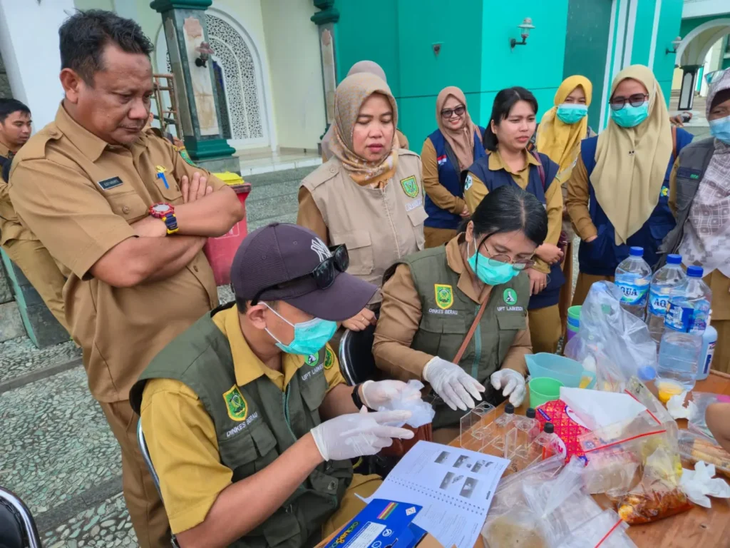 Foto: Dinas Kesehatan Berau dan BBPOM Kaltim saat melakukan uji sampel makanan di Masjid Agung Baitul Hikmah.